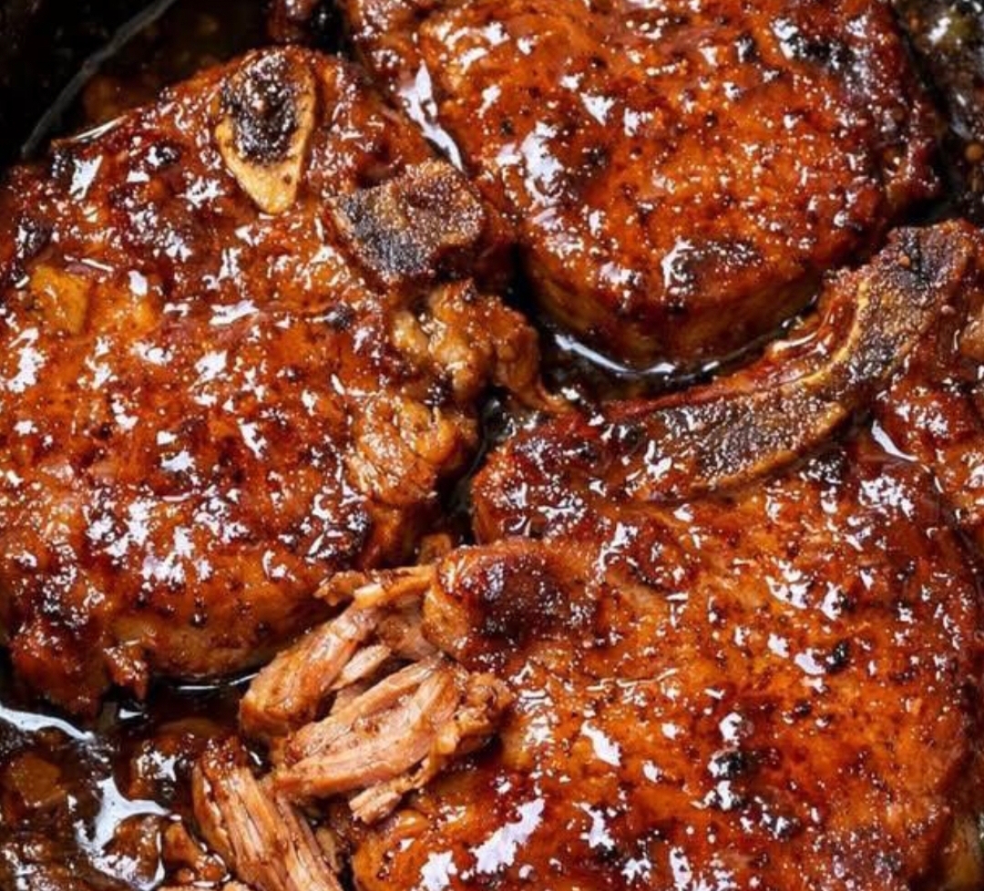 Cover and cook on LOW for 6 to 7 hours, or on HIGH for 3 to 4 hours, until the pork chops are very tender and reach an internal temperature of 145°F (63°C).