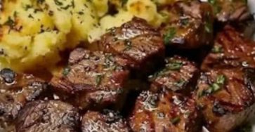 INGREDIENTS:1 lb (450g) sirloin steak or ribeye, cut into bite-sized cubes2 tbsp olive oil3 tbsp unsalted butter4 cloves garlic, minced1…