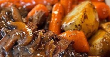 Ingredients2 lbs chuck roast4 carrots, peeled and chopped4 potatoes, peeled and diced1 cup mushrooms, sliced2 cups beef broth1 onion, chopped…