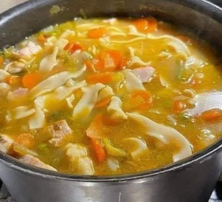 Ingredients:This was my measure with mychicken noodle soup I made on Sunday…About 2 pounds of chicken breast48 oz of chicken broth, then I added some waterCut up carrotsCut up celeryCut up 1/2 red onionSpoonful of minced garlicA few handfuls of egg noodles3 chicken bouillon cubesSalt and pepper to taste (I am heavy handed with pepper)Fresh parsleyPreparation:continued on next page