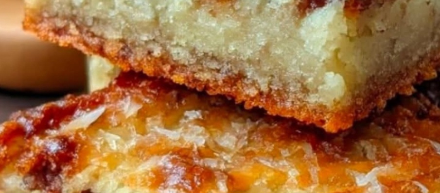 Congo Bars are a nostalgic, rich, and chewy dessert that has been a staple in church cookbooks and grandmas’ kitchens for decades. The combination of coconut, chocolate chips, and a chewy texture makes them an irresistible treat perfect for any occasion.Ingredients:1 ½ cups all-purpose flour1 teaspoon baking powder½ teaspoon salt1 cup unsalted butter, melted1 cup brown sugar, packed1 large egg1 tablespoon vanilla extract1 ½ cups sweetened shredded coconut1 ½ cups semi-sweet chocolate chips½ cup chopped walnuts (optional)Instructions:Preheat the Oven: Preheat your oven to 350°F (175°C). Grease a 9×9-inch baking pan or line it with parchment paper for easy removal of the bars.Mix Dry Ingredients: In a medium-sized bowl, combine the flour, baking powder, and salt. Set aside.Mix Wet Ingredients: In a large mixing bowl, whisk together the melted butter and brown sugar until smooth. Add the egg and vanilla extract, and whisk until well combined.Combine Wet and Dry Ingredients: Gradually add the dry ingredients into the wet mixture, stirring until just combined.Add Coconut, Chocolate, and Nuts: Fold in the shredded coconut, chocolate chips, and optional chopped walnuts, making sure everything is evenly distributed.Bake: Pour the batter into the prepared baking pan and spread it evenly. Bake for 25-30 minutes, or until the edges are golden brown and a toothpick inserted into the center comes out clean.Cool and Cut: Let the Congo Bars cool in the pan for about 10 minutes. Then, cut them into squares or bars while still slightly warm.Serve and Enjoy: Serve the Congo Bars warm or at room temperature, and enjoy the perfect blend of chewy, coconut-filled goodness with a burst of chocolate in every bite!These Congo Bars are a classic, easy-to-make dessert that will bring back memories of family gatherings and shared kitchen moments.