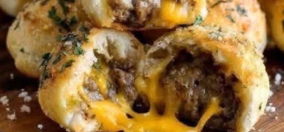 IngredientsFor the Cheeseburger Filling1 lb ground beef1 small onion, finely diced2 cloves garlic, minced1 tsp salt½ tsp black pepper1 tbsp Worcestershire sauce½ cup cheddar cheese, shredded (or small cheese cubes)Optional add-ins: diced pickles, bacon bits, jalapeñosFor the Dough1 can (8-count) refrigerated biscuits or 8 small balls of pizza doughGarlic Parmesan Butter4 tbsp melted butter2 cloves garlic, minced2 tbsp grated Parmesan cheese1 tbsp fresh parsley, chopped (or 1 tsp dried)Optional: pinch of Italian seasoning🧑🍳 Instructions1. Make the Burger FillingIn a skillet over medium-high heat, cook the ground beef and onions until beef is browned and onions are soft.Add the minced garlic and cook 1 minute more.Season with salt, pepper, and Worcestershire sauce.Remove from heat and let cool 5 minutes.Stir in shredded cheddar (or add cheese cubes later inside each bomb).2. Assemble the BombsPreheat oven to 375°F (190°C). Line a baking sheet with parchment paper.Flatten each biscuit or dough ball into a circle about 4–5 inches wide.Spoon 1–2 tbsp of the beef mixture into the center.Add extra cheese in the middle if using cubes.Fold the dough up and around the filling, pinching to seal tightly.Place seam-side down on the baking sheet.3. Prepare Garlic Parmesan ButterMix melted butter, garlic, Parmesan, and parsley in a small bowl.Brush each bomb generously with the mixture.4. BakeBake for 15–18 minutes, or until golden brown and cooked through.Brush again with any remaining garlic-Parmesan butter as soon as they come out of the oven.🍽️ Serving SuggestionsServe with:RanchGarlic aioliBurger sauceMarinara (for a pizza-burger twist)Great as appetizers, game-day snacks, or easy weeknight dinners!