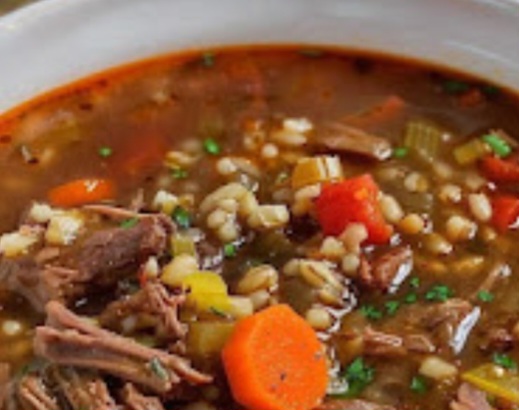 Ingredients1 lb boneless chuck roast, trimmed and cut into ½-inch pieces1½ cups carrots, thinly sliced1½ cups celery, thinly sliced⅔ cup onion, chopped1 (8 oz) package pre-sliced mushrooms2 tbsp beef base (concentrated beef flavor, different from beef broth)8–10 cups water1 large bay leafSalt and pepper, to tasteInstructions1. Brown the Beef (Optional but Recommended)Heat a non-stick skillet over medium-high heat.Brown the beef in batches, stirring frequently until all sides are golden.Transfer beef to a crockpot or large soup pot.2. Combine IngredientsAdd carrots, celery, onion, mushrooms, beef base, water, and bay leaf to the pot.Stir to combine.3. Cook the SoupCook on high heat for 1 hour.Add pearl barley, then reduce heat to low and continue cooking until beef and vegetables are tender, about 45–60 minutes more.4. Season and ServeRemove the bay leaf.Stir in salt and pepper to taste.Serve hot with crusty bread for a complete meal.Tips for Success✨ Tough Cuts Work Best: Chuck roast or shoulder is ideal for slow-cooked soups—no need for pricey sirloin.✨ Browning Adds Flavor: While optional, browning the beef first gives a deeper, richer taste to your soup.✨ Vegetable Variations: Feel free to add potatoes, parsnips, or turnips for extra heartiness.✨ Storage: Soup keeps well in the fridge for up to 4 days or freezes beautifully for up to 3 months.⏱ Prep Time: 15 minutes | Cook Time: 1½–2 hours | Total Time: 1 hr 45 min🍴 Servings: 6–8This Beef and Barley Soup is cozy, filling, and full of flavor, perfect for warming up on a cold day or anytime you crave a comforting, hearty meal.