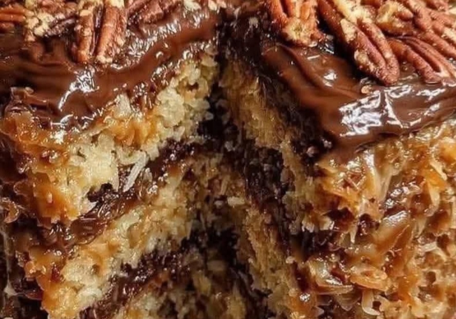 IngredientsCooking spray1 tablespoon cake flour½ cup unsweetened cocoa1 ounce sweet baking chocolate½ cup boiling water1 cup granulated sugar¾ cup packed brown sugar3 tablespoons butter or stick margarine, softened2 tablespoons vegetable oil¼ cup plain fat-free yogurt2 ½ teaspoons vanilla extract½ teaspoon coconut extract2 large egg whites2 ¼ cups sifted cake flour2 teaspoons baking powder½ teaspoon baking soda½ teaspoon salt1 cup low-fat buttermilkCoconut-Pecan FrostingDirections✅ Step 1Preheat oven to 350°.✅ Step 2Coat 3 (8-inch) round cake pans with cooking spray, and dust with 1 tablespoon flour.✅ Step 3Combine cocoa and chocolate in a small bowl; add boiling water, stirring until chocolate melts. Set aside.✅ Step 4Combine sugars, butter, and oil in a large bowl, and beat at medium speed of a mixer until well-blended (about 5 minutes). Add yogurt, extracts, and egg whites; beat well.✅ Step 5Lightly spoon sifted flour into dry measuring cups, and level with a knife. Combine sifted flour, baking powder, baking soda, and salt. Add flour mixture to creamed mixture alternately with buttermilk, beginning and ending with flour mixture. Beat in cocoa mixture.✅ Step 6Pour cake batter into prepared pans. Sharply tap pans once on counter to remove air bubbles. Bake at 350° for 25 minutes or until a wooden pick inserted in center comes out clean. Cool in pans 10 minutes, and remove from pans. Cool completely on wire racks.✅ Step 7Place 1 cake layer on a plate; spread with 1/3 cup Coconut-Pecan Frosting, and top with another cake layer. Spread with 1/3 cup frosting, and top with remaining cake layer. Spread remaining frosting over top and sides of cake. Store cake loosely covered in refrigerator.Nutrition Per Serving:311 calories; calories from fat 27%; fat 9.2g; saturated fat 4.2g; mono fat 2.6g; poly fat 1.4g; protein 4.6g; carbohydrates 52.7g; fiber 0.3g; cholesterol 35mg; iron 2.2mg; sodium 186mg; calcium 111mg.ENJOY!!