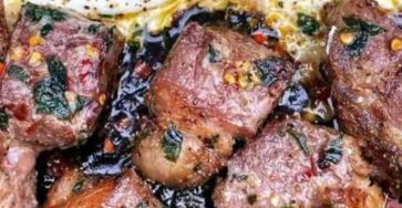 INGREDIENTS:1 lb (450g) sirloin steak or ribeye, cut into bite-sized cubes2 tbsp olive oil3 tbsp unsalted butter4 cloves garlic, minced1…